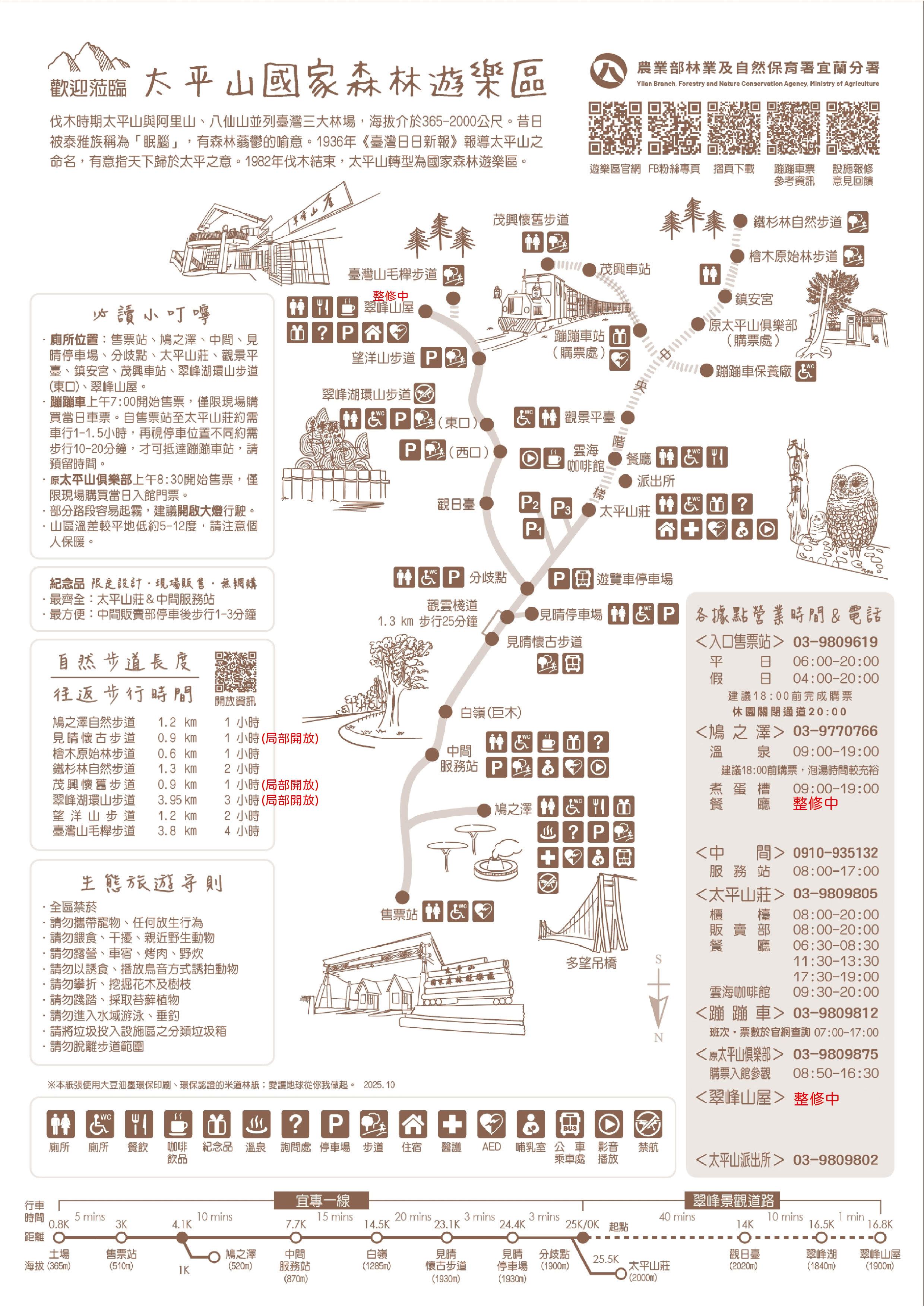 ::: 首頁 認識太平山 摺頁下載 回上一頁 當script無法執行時可按"Alt + ←"鍵替代; 摺頁下載 全部遊樂區太平山步道社區步道未分類 共 11 筆資料、第 1/1 頁 1 推薦下載-太平山簡版導覽圖(115年2月版) 太平山莊各館位置示意圖(20251223) 檜木原始林步道及周邊步道群(110.03) 臺灣寬尾鳳蝶的前世今生(108.04) 太平山國家森林遊樂區四季花木-山顏花色(101.10) Luodong Forest Railroad Travel Map羅東林鐵旅遊地圖(英106.08) 羅東林鐵旅遊地圖(106.08) 韓文_太平山檜木原始林步道及周邊步道群(版本110.3) English_Taipingshan Cypress Forest Trail and its Surroundind Trails Network(rev.110.3) 日文_太平山檜木原始林步道及周邊步道群(版本110.3) 春寒 電影地景小旅行 共 11 筆資料、第 1/1 頁 1 按讚加入太平山粉絲團 回上一頁 當script無法執行時可按"Alt + ←"鍵替代;